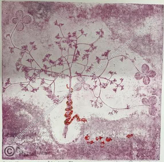Kuka soi omenat / Who ate the apples (21x22cm) Koko/size LxKcm 21×22 sekatekniikka/ mixed technics, monotypia 2014