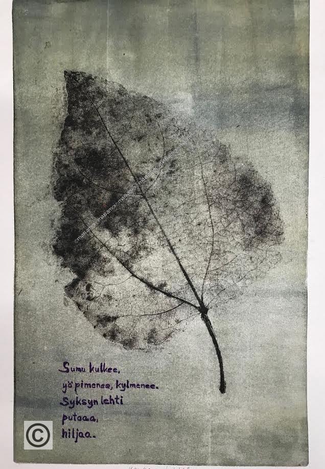 Syksyn lehti / Autumn leaf (21x29cm) Koko/size LxKcm 21×29 sekatekniika/mixed technics, monotypia 2014