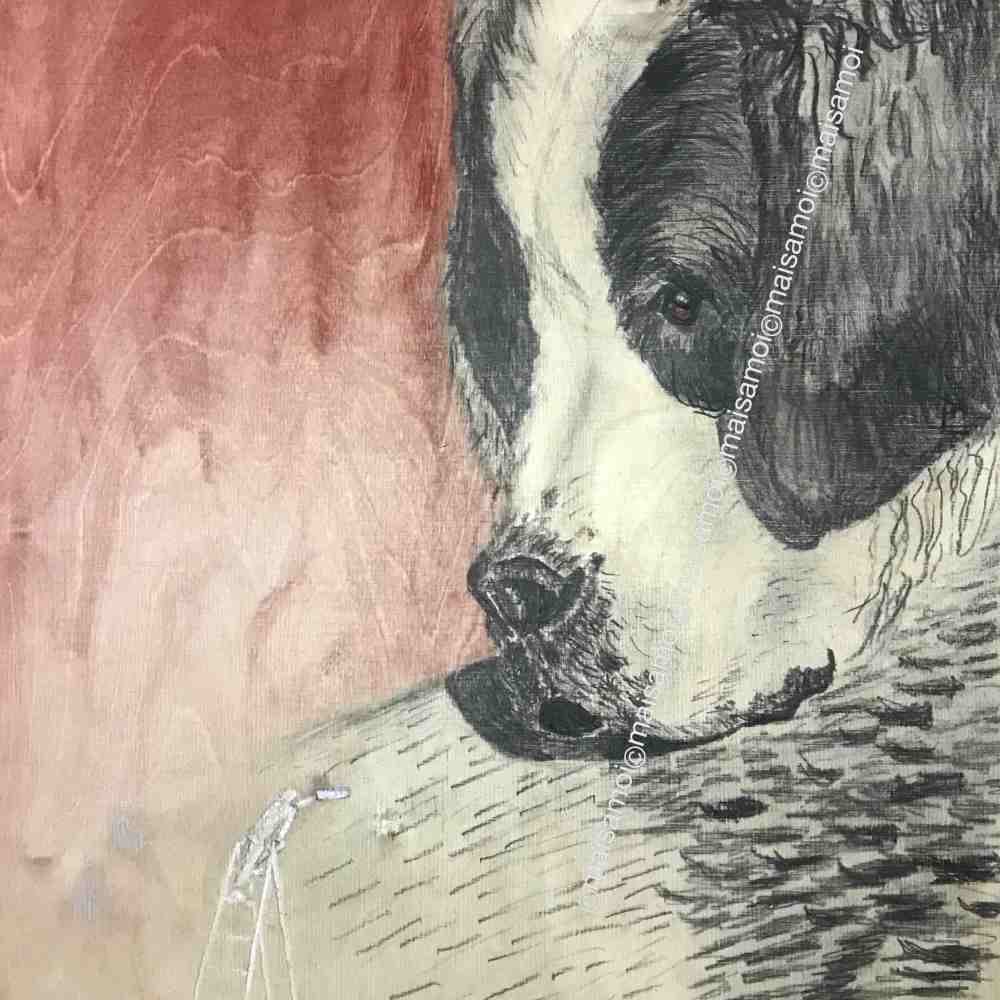 Noinko pieni annos / So small portion (40x40cm) Not for sale vaneri, akryyli, lyijykynä, kaiverrus, plywood, acrylic, pencil, 40x40cm