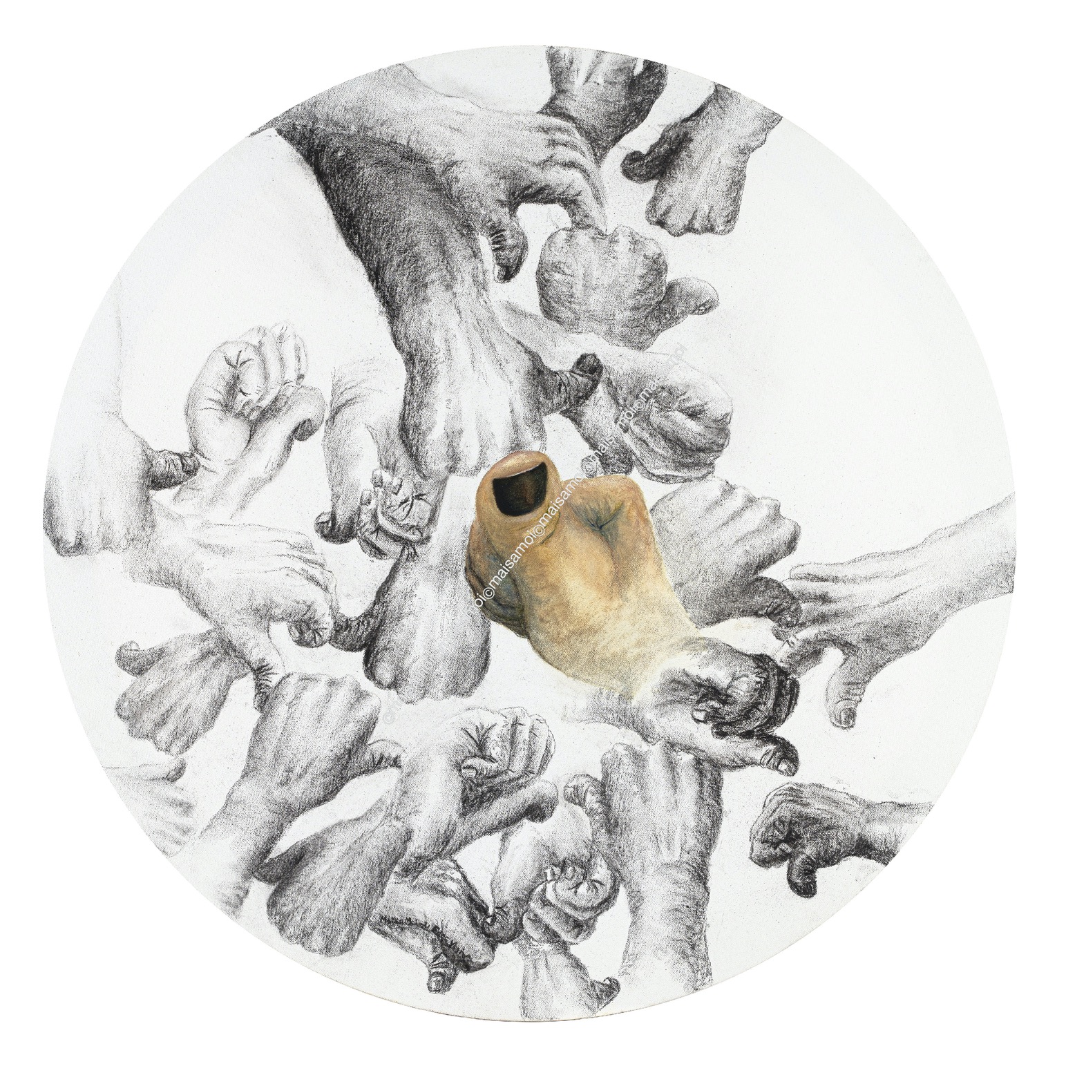 Edes yksi, round diamm.80cm, mixed technics, cotton duck
